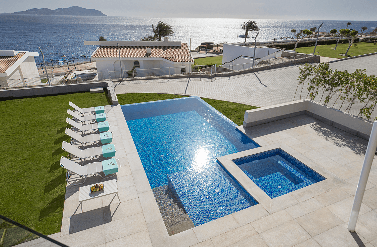 Our Villa Four Bedroom offer an expansive 700 sqm of luxury, featuring Three Queen bed and One Twin bed, Four bathrooms, Private Garden and a private Pool. With a fully equipped kitchen and a spacious living area, this Villa provide unparalleled sea views for a truly regal experience.